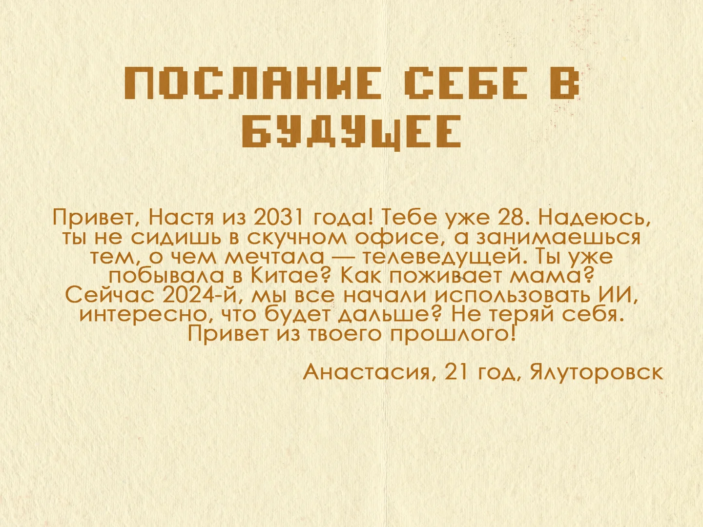 Проект «ЦифроКапсула» собирает живой архив Тюменской области, где каждое личное воспоминание становится частью общего наследия. Мы сохраняем то, что время может стереть. Оставьте свой след в истории региона — загрузите фото, письмо или видеообращение в нашу цифровую капсулу времени.