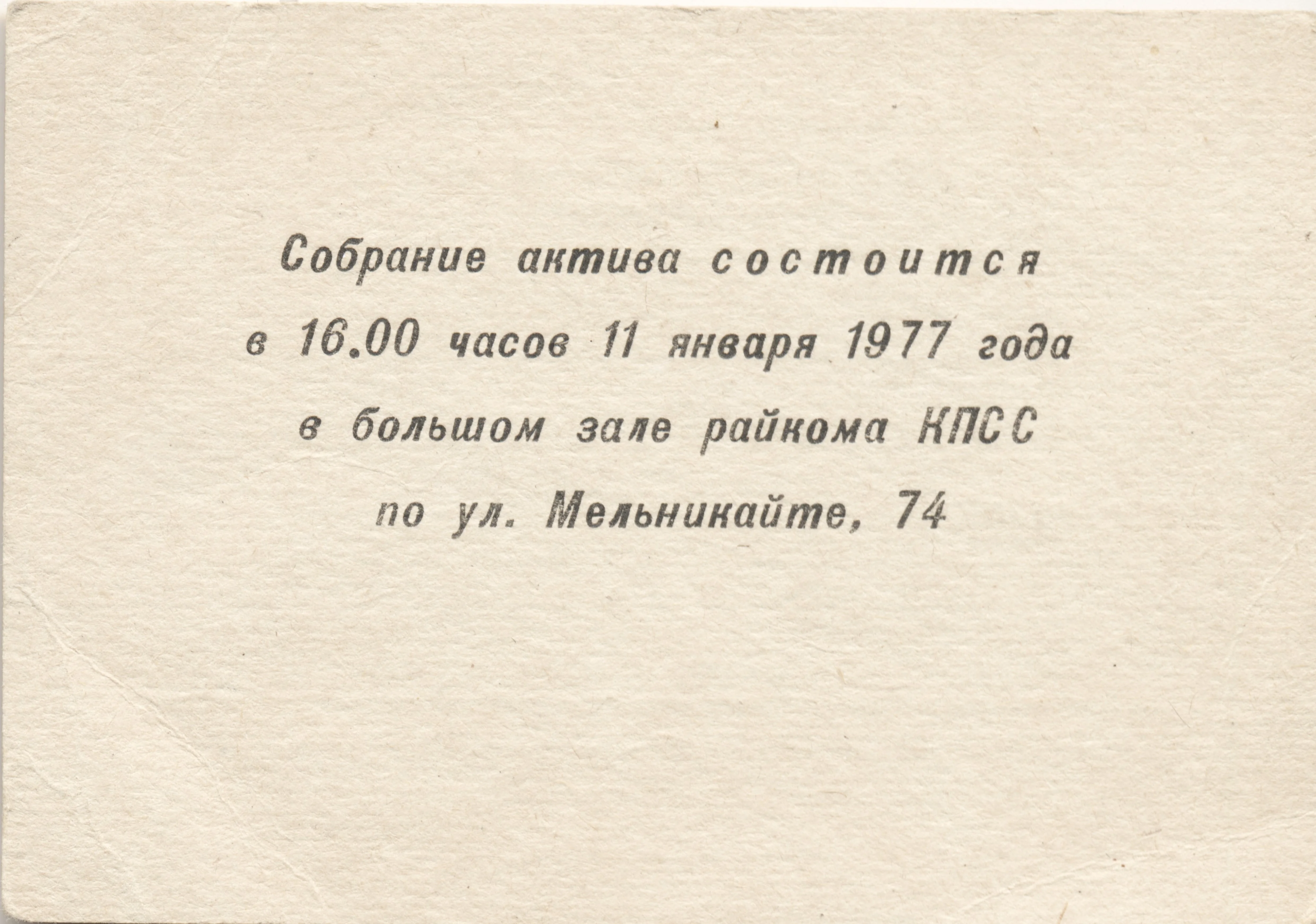пригласительный билет на собрание партийного актива Ленинского райкома г.Тюмени